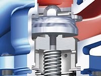 Откывающий термоклапан (для систем охлаждения) открывает при повышении температуры
