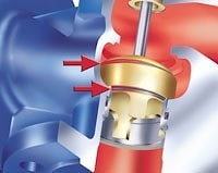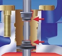 Экономичный, т. к. герметично закрывается (ход A и B ) благодаря специальному гибкому уплотнению в зоне затвора/седла!